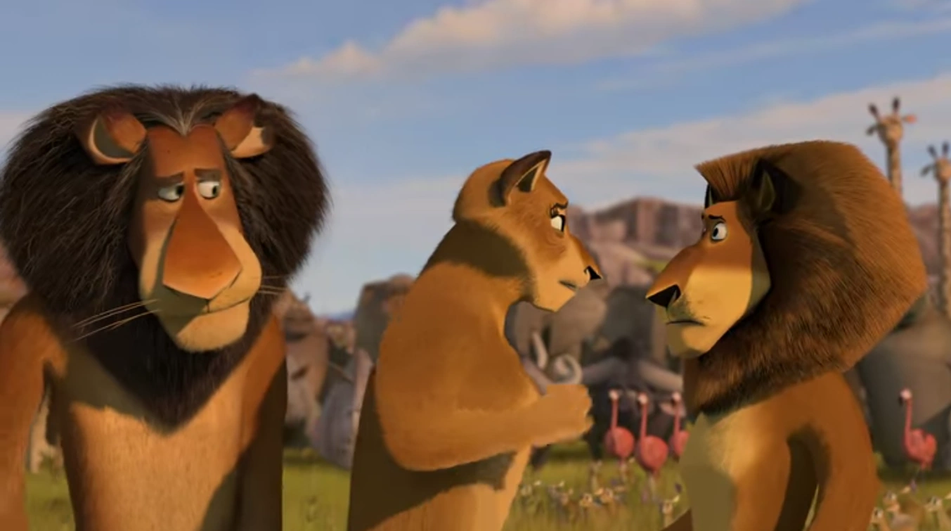 In Madagascar: Escape 2 Africa, Alex was aware of Melman's feelings towards Gloria, and he even encouraged the giraffe to tell her when he saw them fight. At the end of the movie, Alex is happy because they were both finally together.