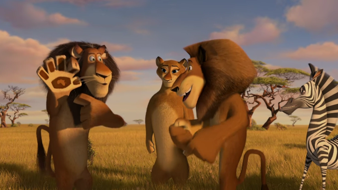 In Madly Madagascar, Alex and Marty distracted Gloria so that she does not discover the surprise that Melman had prepared for her. Alex even tried to convince Gloria not to get involved in Julien's potion, arguing that she did not need it and that she was not really losing Melman.