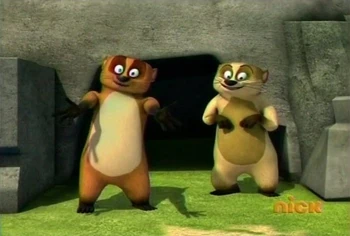 The Badger Habitat in Central Park Zoo is the home of Becky and Stacy the American badgers, beside them it also hosts a cave and some rocks. Since the Lemur Habitat was seen in the background this could also be the Flamingo Habitat.