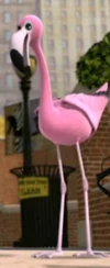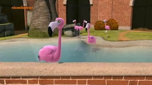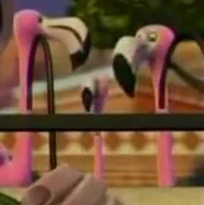 There is a second flamingo who can be seen for a split second walking with Pinky in a crowd shot in Skorca!, but we get a very good view at about 8 additional flamingos in Monkey Love when they chase Phil. If you look at its location, it is in the same place as the Baboon Habitat.