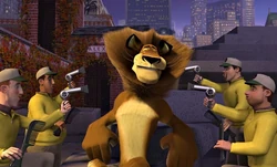 There is no lion exhibit in the penguins TV series. Instead, Joey lives in Alex's old exhibit.